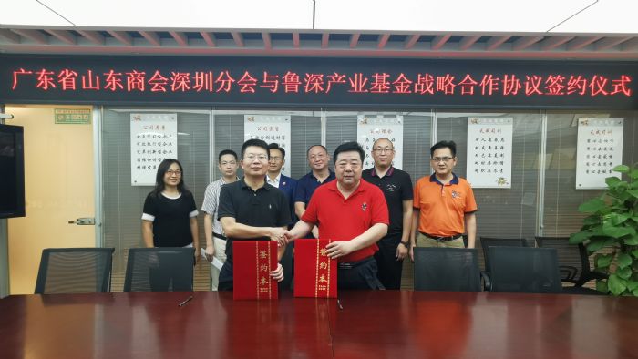 2021年9月10日,广东省山东商会深圳分会与深圳市前海鲁深产业发展私募股权基金管理股份公司签约仪式在我商会会议室圆满举行。深圳市前海鲁深产业发展私募股权基金管理股份公司董事长赵永宝与鲁商联盟会常务副会长、广东省山东商会常务副会长兼深圳会长、广东省异地商会联合会执行会长、深圳市齐鲁文化研究会会长孙明高正式签订战略合作协议。我商会常务副会长赵延军、许德学,副会长兼产业园区分会会长曹山,深圳市山东青岛商会副会长、德和衡律师事务所合伙人孙福林,我商会理事会秘书长周爱先,乐天成控股集团投行部副总张乔见证签约。
