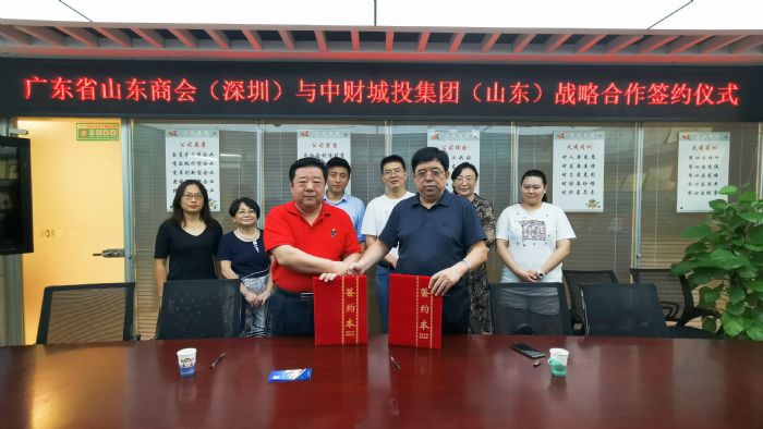 2021年9月18日,广东省山东商会深圳分会与中财城投集团(山东)有限公司签约仪式在我商会会议室圆满举行。中财城投集团(山东)有限公司总裁张修强与鲁商联盟会常务副会长、广东省山东商会常务副会长兼深圳会长、广东省异地商会联合会执行会长、深圳市齐鲁文化研究会会长孙明高正式签订战略合作协议。中财城投集团(山东)有限公司副总经理穆庆勇,我商会副会长焦虹、驻会秘书长尹兆杰、理事会秘书长周爱先等领导一同见证签约。