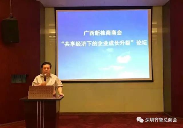 2017年8月26日,为打造创新型、学习型的商会,进一步适应当今社会经济的变化发展,跟上时代的步伐。广西新桂商商会主办,广东省山东商会深圳分会协办的“共享经济下的企业成长升级”论坛在广西天昌投资集团公司隆重举办。自治区工商联副主席吴振秋,广西天昌投资有限公司董事长陈耀宗、广西新桂商商会会长陈向阳,会员部部长许丹等商会领导班子及理事会成员出席本次活动论坛。广东省山东商会深圳分会会长、中国天成大学校长孙明高博士作为主讲嘉宾受邀出席大会。