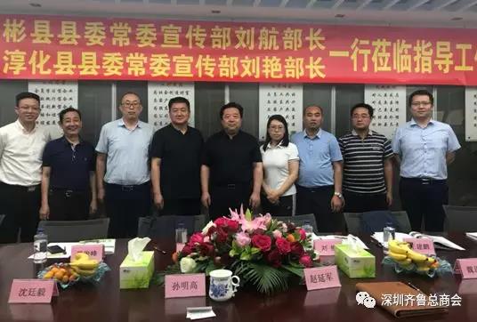 5月9日,陕西省淳化县县委常委宣传部部长刘艳、淳化县县委宣传部干部王建鹏等人一行莅临广东省山东商会深圳分会考察指导。全国山东商会战略联盟副主席、广东省山东商会常务副会长、广东省山东商会深圳分会会长孙明高、广东省山东商会深圳分会会长助理周爱先、广东省山东商会深圳分会投资银行商会常务副会长赵延军、深圳利民通科技公司董事长沈廷毅、总经理程勇民、市场总监魏思文等人在在集团会议室予以热情接待,双方进行深入座谈交流。