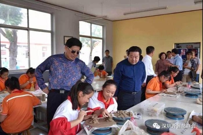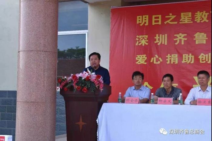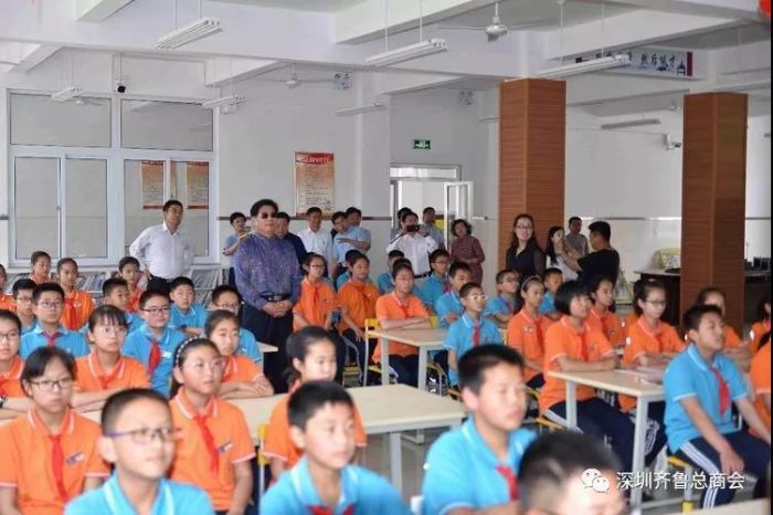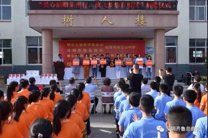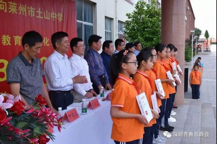 2018年5月25日,正值莱州月季花节,百花争艳,春意盎然。土山中学名誉校长、广东省山东商会深圳分会会长、深圳乐天成控股集团董事局主席孙明高博士携明日之星教育基金会、广东省山东商会深圳分会来我校进行了爱心捐赠活动。