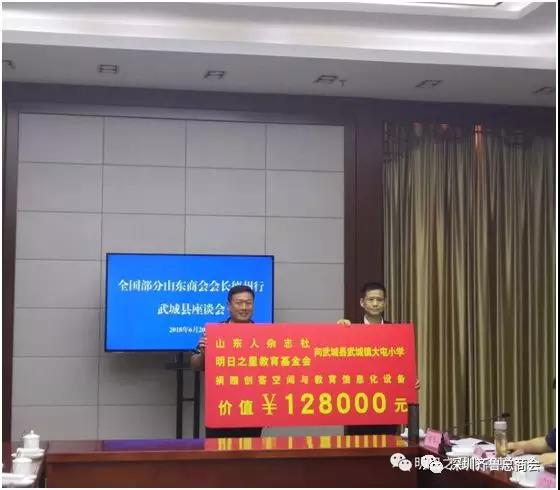 明日之星教育基金会张明勇会长代表发言表示今日的爱心行动意义远不止在物质和金钱的援助上,更重要的还在于精神上的鼓舞与支持,在外鲁商人士心系家乡,不忘回报,希望此次活动可以为山东家乡事业贡献更多的力量。