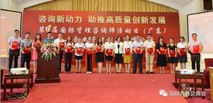 8月9日,由中国企业联合会、国际管理咨询协会理事会指导,广东省企业管理咨询协会、广东省小微企业服务机构联合会主办的第十一届国际管理咨询师活动日活动,在广州白云区鸣泉居会议中心隆重举行。大会主题为“咨询新动力助推高质量创新发展”。多家商协会会长、多家媒体记者、国内外知名专家顾问、省一批咨询公司负责人以及企业家代表共计三百余人出席了本次活动。山东省鲁商联盟会常务副会长、广东省山东商会常务副会长、广东省山东商会深圳分会会长、深圳市齐鲁文化研究会会长孙明高博士应邀出席了本次活动。