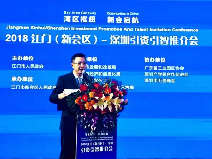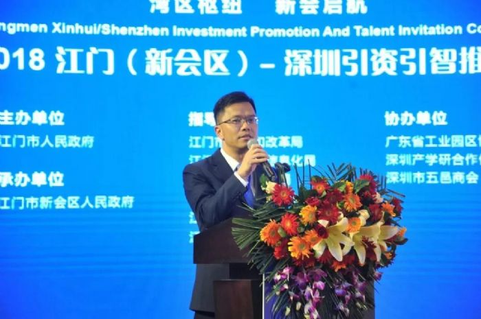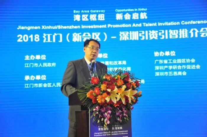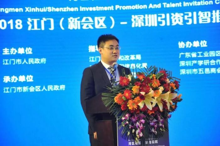 推介会上,江门市副市长蔡德威作了热情洋溢的致辞。蔡德威副市长表示,本次引资引智推介会,是全面贯彻党的十九大精神,贯彻落实习近平总书记要求广东工作“四个走在全国前列”和“以新的更大作为开创广东工作新局面”的具体行动,也是贯彻落实江门市委市政府“招商引资突破年”,推动经济高质量发展的具体举措。新会区投资环境优越,珠西综合交通枢纽江门站汇集深湛铁路、广珠城轨、广佛江珠城轨等6条轨道交通,是省四大枢纽站之一,也是江门市重点打造项目;新会的三大万亩园区深江产业园、珠西新材料集聚区和粤澳(江门)产业合作示范区是江门重点打造的发展平台;“黄金十条”等优惠政策的落地,为新会吸引来一大批重点项目。新会迎来了最好的时期,江门市政府将重点支持和帮助新会成为江门经济发展的新增长极。