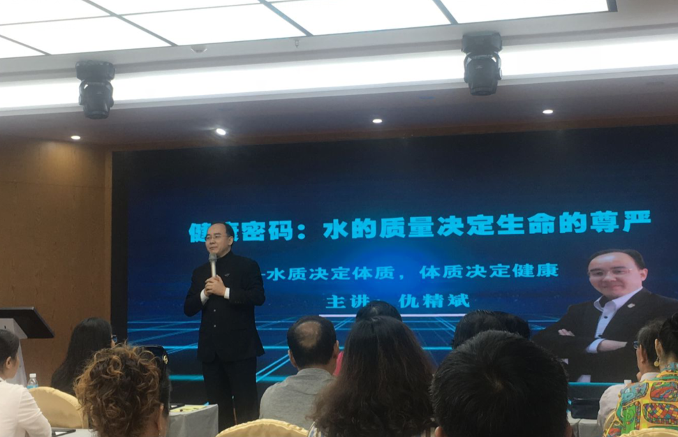 而后,水圣国际总裁仇精斌董事局主席为大家介绍了水的重要性,他表示水对我们的生命起着重要的作用,它是生命的源泉,是人类赖以生存和发展的不可缺少的最重要的物质资源之一。人的生命一刻也离不开水,一个成年人体内最少含水量为70%。人的生命活动都是与水息息相关。