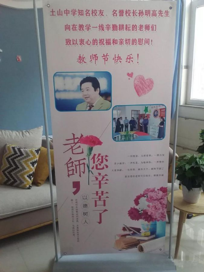 金秋九月,丹桂飘香,在第34个教师节来临之际,土山中学知名校友、名誉校长、广东省山东商会深圳分会会长、深圳市齐鲁文化研究会会长孙明高向奋战在教育岗位上的全体土山中学教职工送上衷心的祝福和亲切的慰问:祝全体老师教师节快乐!