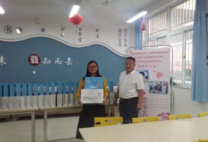 9月10日下午,广东省山东商会深圳分会李洪贵副会长代表孙明高会长专程前往土山中学,向老师们致以节日的祝贺,并在学校“天成图书馆”举行了简单的敬赠仪式,向老师们敬献了纪念礼品。敬赠仪式上,土山中学校长修金荣代表学校全体教职工向孙明高会长的深情厚谊致以了诚挚的感谢,对孙明高会长尊师重教、感恩母校的情怀表达了深深的敬意。