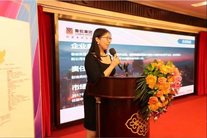 首先,东莞鲁能广宇房地产开发有限公司刘博女士对鲁能幸福地产项目作品牌拓展推介。刘博女士表示,鲁能集团是国家电网公司的全资子公司,国家电网公司是中国特大型国有重点骨干企业,是全球最大的公用事业企业,在《财富》世界500强中位列第2位。2017年鲁能地产销售额超过800亿元,位居中国房地产百强企业20位,央企第5位。因此,“创造美好生活”是鲁能地产一直以来的责任与使命,经过不断的创新发展,最终形成了“生态、健康、运动、娱乐、科技”五大产品维度。