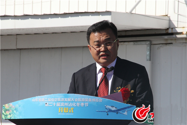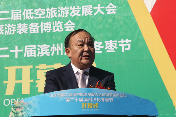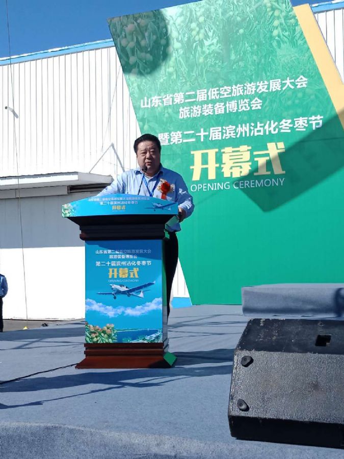 开幕式上,滨州市委副书记、市长宇向东致辞表示,新旧动能转换正当时,产业融合共发展,沾化冬枣节已成为闻名省内外的金牌节会,尤其是与山东省低空旅游发展大会、旅游装备博览会联合举办,为旅游资源深度融合、共同发展搭建了重要平台。我们将助推沾化冬枣产业老树发新芽,通用航空产业新枝成大树。