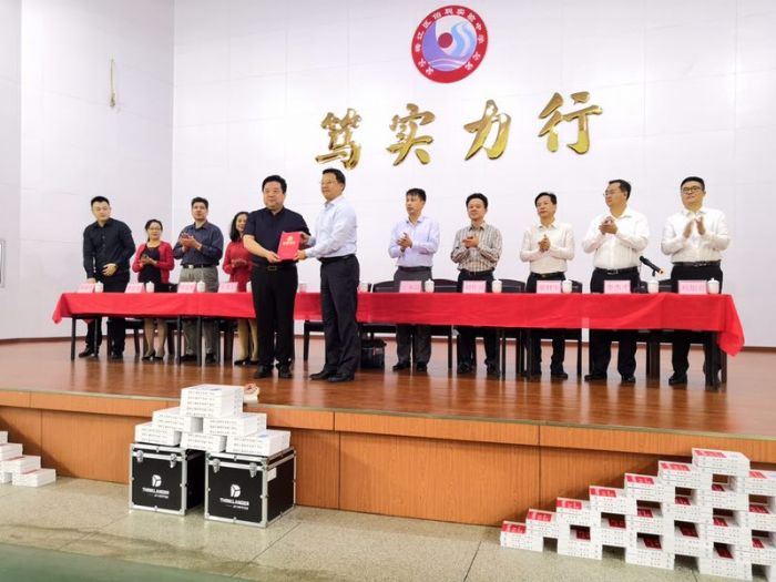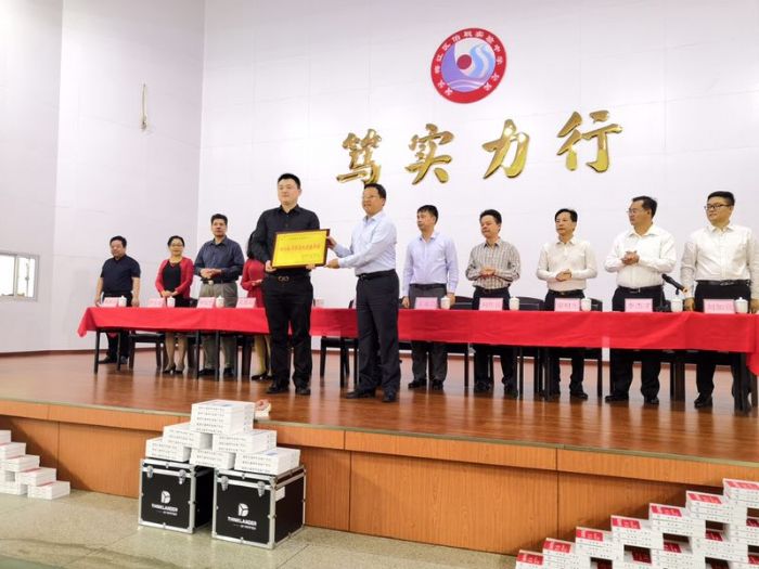 随后,由广东圣丰集团办公室主任周国亮与明日之星教育基金会名誉理事长、广东省山东商会深圳分会会长孙明高作为捐赠单位代表向梅州市捐赠了价值478万元的平板电脑、教学软件等教学设备。梅州市工商联领导分别向广东圣丰集团、明日之星教育基金会颁发了荣誉铜牌和荣誉证书。