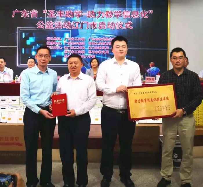 此次江门市启动仪式,是广东省“圣丰助学-助力教育信息化”系列活动的第五站。此前,广东省山东商会(深圳)、广东省山东商会深圳分会联合常务副会长单位明日之星教育基金会积极行动、坚持不懈,共同资助了20多个省份的学校,为九年义务阶段中小学生资助教学设备、学习用品、图书等。助力各资助地区全面提升教育质量、在更高层次上促进教育公平、建立网络化、数字化、个性化、终身化的教育体系,推动形成基于信息技术的新型教育教学模式与教育服务供给方式,取得了良好的社会效应,得到广大学校和社会的一致好评。既弘扬了扶弱济困、捐资助学的传统美德,也为全社会传递了奉献爱心、共创和谐的理念。