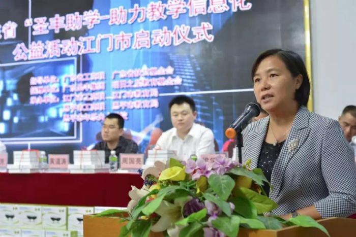 11月1日下午,由广东省工商联、广东省扶贫办扶贫基金会,江门市委市政府、教育局、工商联,广东圣丰集团,广东省山东商会深圳分会常务副会长单位明日之星教育基金会联合开展的广东省“圣丰助学-助力教育信息化”公益活动江门市启动仪式在恩平市年乐夫人学校成功举行。