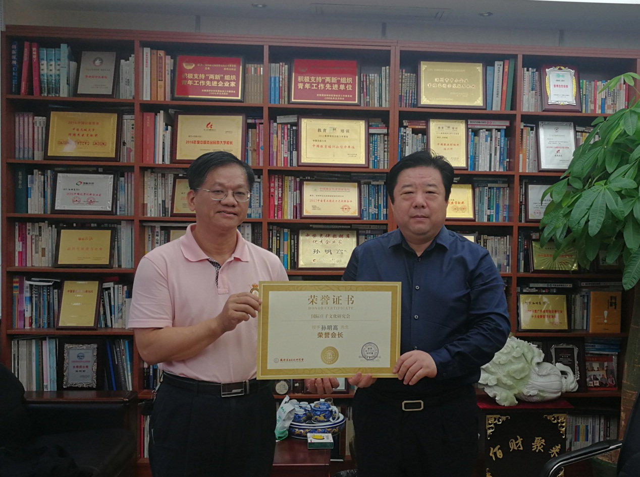 十八大以来,在中国复兴梦的引导下,以习近平同志为核心的党中央将文化建设大业特别是优秀传统文化的传承发展提高到一个前所未有的高度,并将中华优秀传统文化传承发展纳入国家发展战略和提出了一系列重大战略举措。在国家提出传统文化是独特战略资源的今天,作为传统文化的一颗耀眼明珠,道家庄子文化对于民族复兴、中国崛起必将起到非常重要的文化理论指导作用,而发掘与鼓励庄子文化理念的传承者则显得尤为重要。基于此,经国际庄子文化研究会研究决定,正式聘任“道商”孙明高会长为国际庄子文化研究会名誉会长,对孙明高会长为弘扬庄子文化所作的贡献予以认可、鼓励。