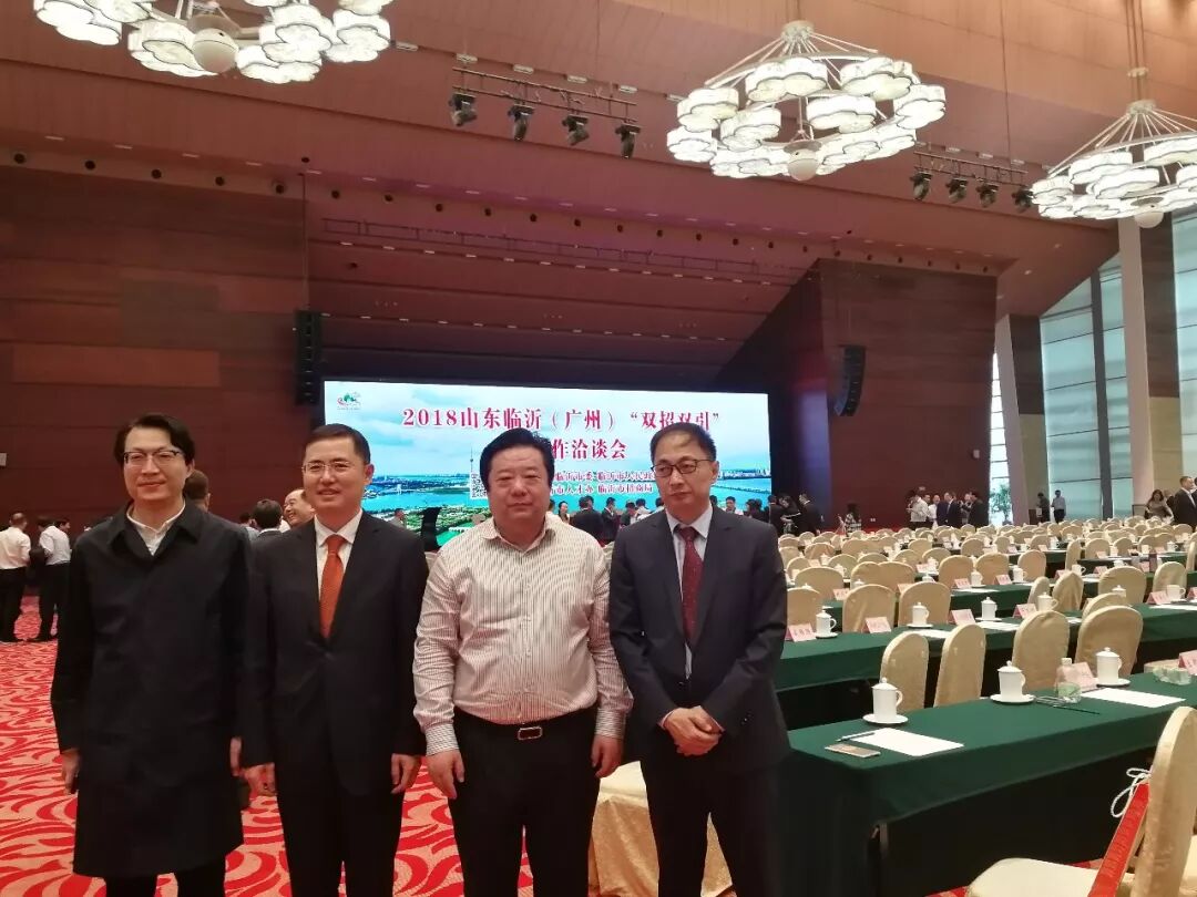 12月3日,由中共临沂市委、临沂市人民政府主办,临沂市人才办、临沂市招商局承办的2018山东临沂(广州)“双招双引”工作洽谈会在广州成功举办。临沂市委书记王玉君,市委副书记、市长孟庆斌,市政协主席徐涛,市人大常委会主任杜德昌以及临沂市各部门相关负责人、众多商协会和企业家代表参加了会议。山东省鲁商联盟会常务副会长、广东省山东商会常务副会长、广东省山东商会深圳分会会长、深圳市齐鲁文化研究会会长孙明高,广东省山东商会深圳分会执行会长吴小平、常务副会长兼基金商会会长任诺寰、副会长兼政府招商分会会长白紫涵、副秘书长孙立发、会长办公室副主任李军等一行应邀出席了此次推介会。