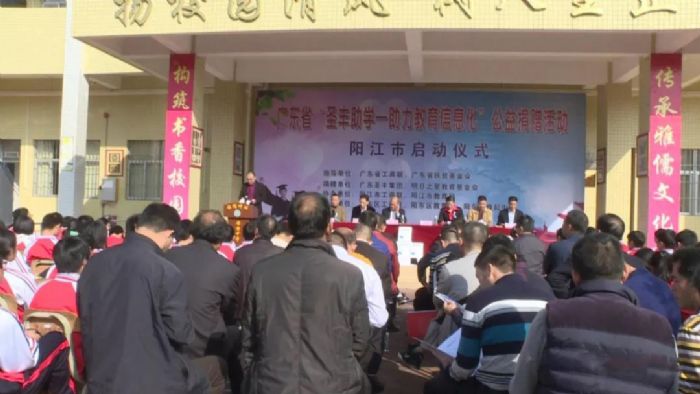 12月19日上午,为助力教育信息化事业发展,促进教学水平和学生学习能力的提高,由广东省工商联、广东圣丰集团和广东省山东商会深圳分会常务副会长单位明日之星教育基金会联合开展的广东省“圣丰助学——助力教育信息化”公益活动阳江市启动仪式在阳东区雅韶中学举行,相关领导、捐赠单位代表、受赠单位代表出席此次启动仪式。