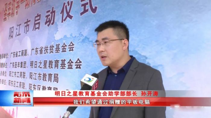 广东省山东商会深圳分会常务副会长单位明日之星教育基金会助学部部长孙开涛表示,我们希望通过捐赠的平板电脑、教学软件以及文房四宝,能够对促进教育公平化,解决地方资源不均衡发展提供一些帮助。我们也希望这些教学物资能够对孩子的学习起到很好的促进作用,在今天这个仪式结束后,我们会陆续在阳春市、江城区、阳西县进行物资的落实。