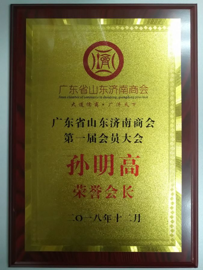 大会宣读了新当选会长、名誉会长、监事长、常务副会长、副会长、理事、监事、秘书长、副秘书长名单。山东省鲁商联盟会常务副会长、广东省山东商会常务副会长、广东省山东商会深圳分会会长、深圳市齐鲁文化研究会会长孙明高荣任广东省山东济南商会名誉会长。