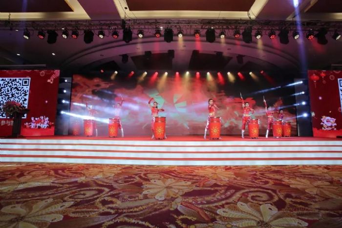 晚会由广东省山东商会深圳分会副会长兼健康管理商会执行会长刘奕辰、深圳市齐鲁文化研究会副秘书长王闯主持。随着主持人一声:“晚会正式开始”,一场精彩绝伦的开场助兴节目——迎新春女子威风水锣鼓表演,拉开了迎新春晚会的序幕。