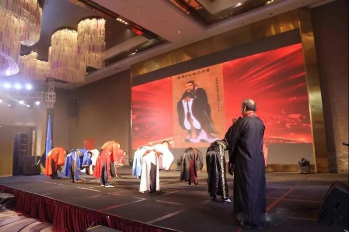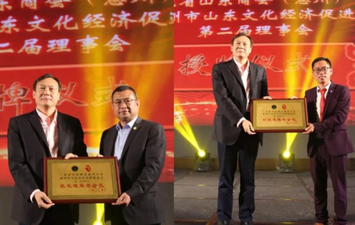 接着,广东省山东商会江南会长发表致辞,并代表全国鲁商联盟以及广东省山东商会向大会的胜利召开表示热烈祝贺!江南会长表示,在这6年多的时间里,惠州山东文化经济促进会在梁衍强会长的带领下,始终砥砺前行,不断发展壮大。还成立了博士顾问团,每年举办“尊孔大典”,把传统文化带进校园,让传承千年的儒家精神更加发扬光大。相信在梁会长的正确领导下,在全体会员大力支持和共同努力下,惠州山东商会及文化经济促进会一定会越办越好,更好地传播齐鲁文化,促进粤鲁两地经济发展。