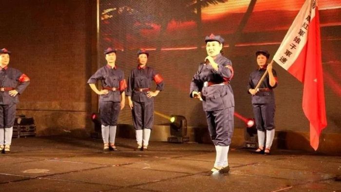 在欣赏完缤纷炫目的灯光秀后,大会正式开始,全体人员庄严肃立,奏唱国歌。