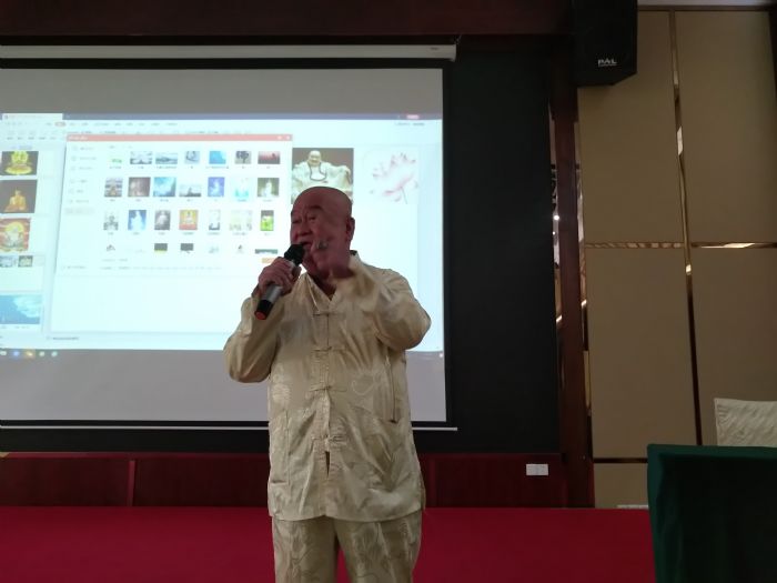 讲座第一环节,曾教授通过播放视频的形式,生动直观地向人们传达了我们“为什么要吃素”以及“吃素的好处”。从视频当中,与会人员充分认识到吃素不仅有延年益寿、提高智力、改善性情等诸多好处,更重要的是吃素是挽救生命与地球的最佳饮食,是充满仁爱的一种生活方式。对此,曾教授表示,他本人已修行、吃素30余年,为了响应前联合国秘书长潘基文的倡议:吃素、环保、救地球,这些年来一直在积极倡导素食的生活理念。讲座第二环节,曾教授同样以播放短视频的方式,精心挑选了十来个短片,从人类破坏环境造成自然灾害、动物感恩人类的救助、动物与动物及动物与人类之间的互帮互助的角度来阐述“累世因、果与六道轮回的关系”。第三环节,曾教授则领着众人诵读《心经》章节,细细体味佛教大乘经典的智慧。
