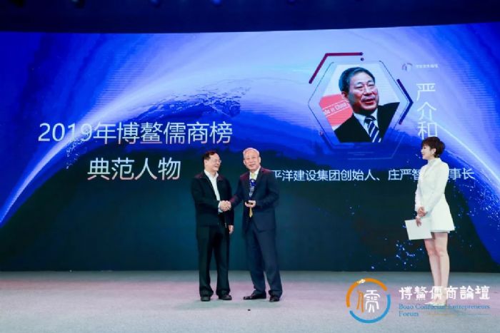 严介和先生用他一以贯之的企业家精神,为中国商界树立了榜样,因此本届论坛特此评定严介和先生为儒商典范人物。最后,由全国工商联原专职副主席庄聪生先生为严介和先生颁奖。
