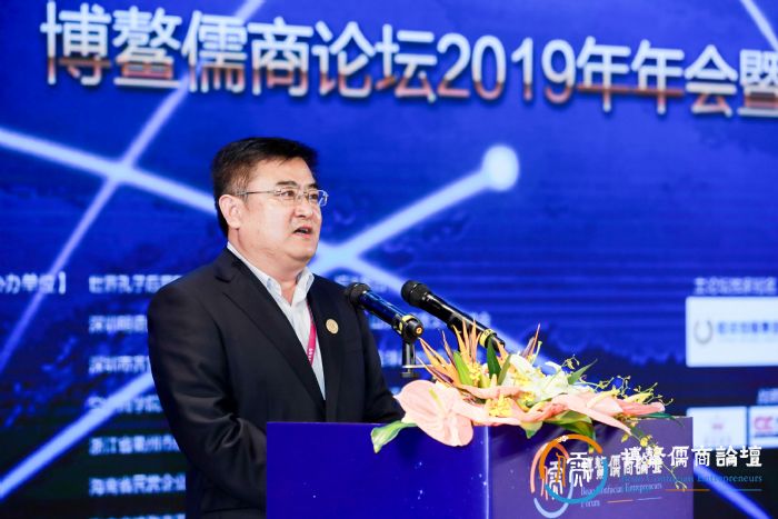济宁市委、市政府深入学习和贯彻习近平总书记系列重要讲话和视察济宁重要讲话精神,确立了“弘扬优秀传统文化,建设文明首善之区”的目标,在国家有关部委大力支持和各方面共同努力下,曲阜优秀传统文化传承发展示范区上升为国家文化战略工程,2018年,济宁成功承办尼山世界文明论坛、孔子文化节、央视中秋晚会“三大活动”。2019年,济宁市坚持把尼山作为曲阜文化示范区核心片区,实施尼山论坛提升工程三年行动计划,推动形成“南有博鳌、北有尼山”的格局。最后,丰家雷主任诚挚的邀请参会的儒商代表到济宁走一走、看一看,进一步增进感情与友谊,开展全方位、宽领域、深层次的合作。
