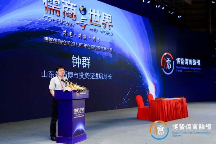 接着,山东省淄博市投资促进局局长钟群在会上推介山东淄博发展的情况,并热情邀请企业家们前往开放的淄博展开更多合作。
