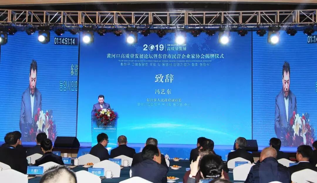 会上,东营市人民政府副市长冯艺东发表致辞,他在致辞中对各位国际友人以及民营企业代表的到来表示欢迎并希望大家借助“黄河口高质量发展论坛”这个平台,继续加强沟通交流,增进相互了解,达成合作共识。热切期盼大家走进东营、了解东营,到东营投资创业,为东营高质量发展出谋划策。