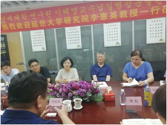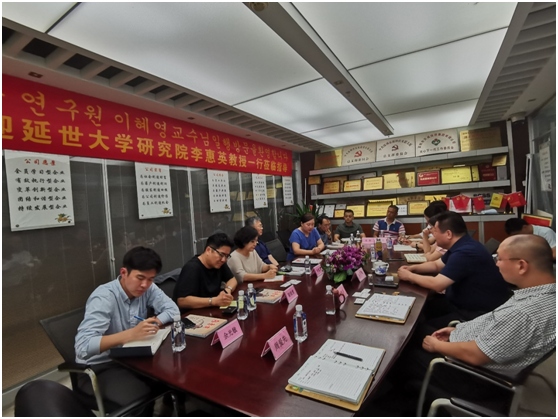 7月25日,延世大学研究院李慧英教授、梁傚晳博士、朴光华教授、余光敏和延世百康科技公司全敏玉董事长、高彬总监等领导莅临广东省山东商会深圳分会考察交流,山东省鲁商联盟常务副会长、广东省山东商会常务副会长、广东省山东烟台商会会长、广东省山东商会深圳分会会长孙明高和广东省山东商会深圳分会副会长许德学、焦虹、孙艳、办公室副主任周爱先等人在商会会议室热情接待了李慧英教授一行,双方围绕延世大学研究院科研项目在国内落地展开座谈交流。