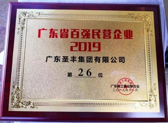 论坛同期举行了“2019广东省百强民营企业”颁牌仪式,广东省山东商会会长单位--广东圣丰集团荣登榜单第26位。