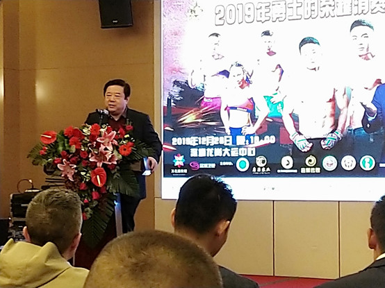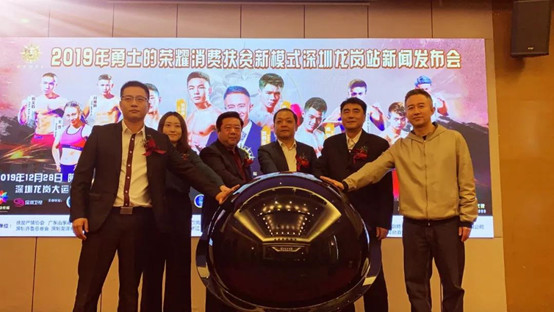 12月7日,由信宜市扶贫产销协会、信宜市康源农业科技发展有限公司、东莞新永翔动漫科技有限公司主办,东文龙艺、嘉麒传媒承办的“勇士的荣耀”深圳站新闻发布会在广东省深圳市举行,全国工商联扶贫与社会服务部部长邵逸、全国工商联扶贫与社会服务部崔星、深圳市龙岗区文化广电旅游体育局副局长杨宪斌、信宜市扶贫产销协会会长、康源农业科技发展有限公司董事长吕荣刚、勇士的荣耀创始人郭晨冬、深圳市德武运动发展促进会副会长许林利、深圳市龙岗区咏春拳武术协会会长张学炎、深圳市散打拳击协会副秘书长王丹及参赛运动员代表魏锐、邓泽奇出席了发布会。山东省鲁商联盟常务副会长、广东省山东商会常务副会长、广东省山东烟台商会会长、广东省山东商会深圳分会会长孙明高应邀出席。