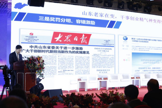 山东省发改委总工程师孙亚平对山东省情况进行推介。孙亚平总工程师从地理位置、经济发展、政府规划等多方面全方位推介了山东省,详细介绍了山东省投资优势,希望各位企业家可以投资山东,落户山东。