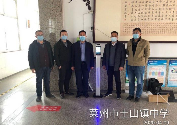 在国内疫情得到较好控制情况下,为确保学校安全复课复学,广东省山东商会深圳分会组织协调为莱州土山中学捐赠“智慧测温仪”,利用信息化科技手段,提高学校疫情防控能力。4月9日,广东省山东商会深圳分会副会长李洪贵代表商会与莱州土山中学彭校长等学校领导共同见证,体验新设备为学校复学复课带来的便利。