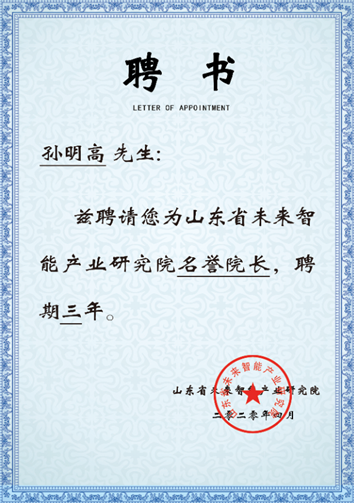 此次孙明高会长荣任山东省未来智能产业研究院名誉院长,既是对孙明高会长多年来在企业管理、商会发展、大学建设等方面所取得成绩的肯定,更是鞭策。孙明高会长将不遗余力协助山东省未来智能产业研究院搭建产学研政校企深度融合的新型研究平台,汇聚海内外优秀高层次人才,上承政府、横连企业、外接海内外研究机构,推动人工智能产业发展与创新,助力山东新旧动能转换。