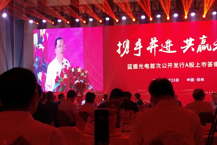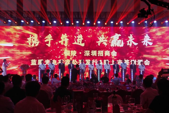 2020年8月23日,铜陵·深圳招商推介会暨蓝盾光电首次公开发行A股答谢酒会在深圳香格里拉酒店圆满举行。安徽省铜陵市委书记、市人大常委会主任丁纯,市委副书记赵振华,市委常委、铜陵经济技术开发区党工委书记黄化锋,市委常委、枞阳县委书记刘亚东,市委秘书长马军,省地方金融监管局局长何昌顺,安徽证监局局长叶锦伟,中国环境保护产业协会会长樊元生,蓝盾光电董事长钱江,华龙证券董事长陈牧原,以及来自深圳及周边地区的60余家优秀企业代表参会。鲁商联盟会常务副会长、广东省山东商会常务副会长、广东省山东烟台商会会长、广东省山东商会深圳分会会长孙明高,广东省山东商会深圳分会副会长兼供应链金融分会会长焦虹一行应邀出席大会。