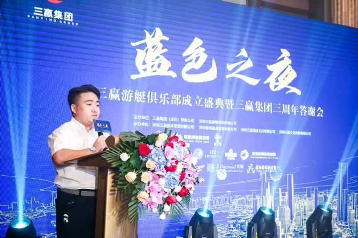 首先,深圳三赢游艇俱乐部有限公司总裁蔡文镇致辞,对全国各地不远千里前来的好友及嘉宾表示衷心的感谢,同时对三赢全体同仁多日来为此次盛会尽心尽力的付出表示感激。蔡文镇总裁从公司定位、投资方向、发展愿景、游艇品牌、成为船东的条件和权益、俱乐部入会条件等方面详细介绍了公司情况,并指出三赢游艇俱乐部将进军国际游艇品牌代理、游艇小镇休闲、游艇驾校连锁、游艇码头泊位建设、游艇会会员服务平台运营等领域,立志成为国内最具影响力与生命力的游艇俱乐部。三赢游艇俱乐部以共建、共享、共荣的经营理念,开创别具一格的船东会,为各界成功人员提供生活极致体验、智慧之光碰撞、财富再造的梦想家休闲后院。