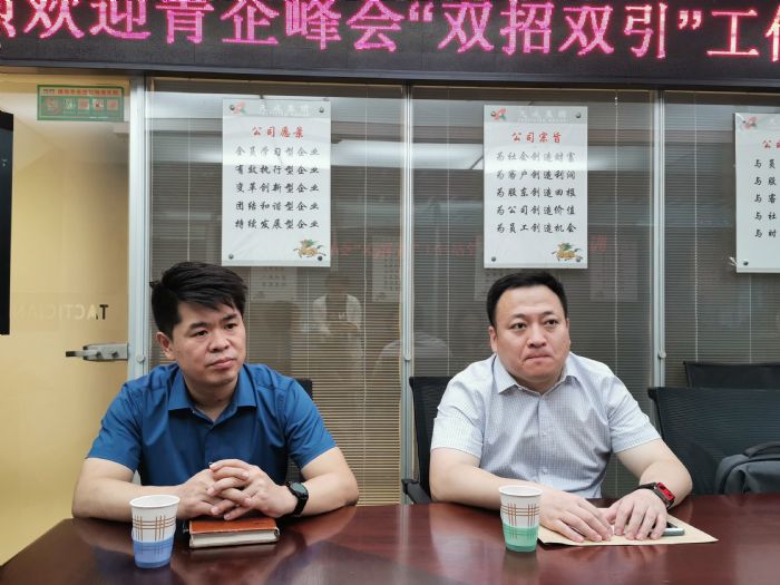 座谈会上,孙明高会长对两位干部的到来表示热烈欢迎,并详细介绍了广东省山东商会深圳分会的发展情况。孙明高会长指出广东省山东商会深圳分会作为青企峰会广东省“双招双引”工作站管理和服务部门,积极服务于山东企业创新需求,服务于山东各地市特色产业,服务于向山东引进各领域高端人才。放眼全国乃至全球,积极引进各种商业资源、优质项目、高端人才,加强与山东各领域合作,切实推动山东“双招双引”工作,回报“山东母亲”的养育之恩。两位济南优秀干部来到我商会挂职,是对工作站、对我商会工作极大的肯定,这大大促进了我商会与济南的多方面的沟通,同时创造了两方深度合作的机遇,希望两位挂职干部能在我商会工作期间工作顺利,取得优异成绩。