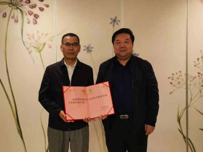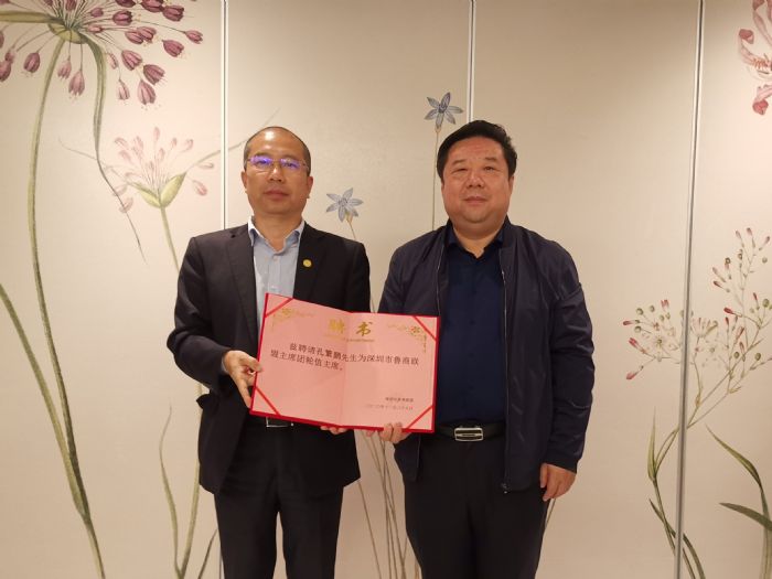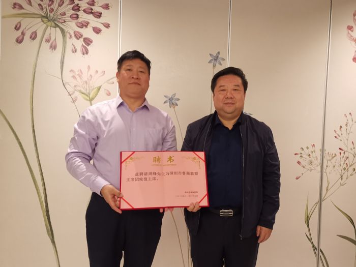 与会人员交流和沟通后,孙明高会长为荣益董事长颁发深圳市鲁商联盟高级顾问证书,分别为赵磊会长、孔繁鹏会长、周峰会长、于常印执行会长、陈为强会长颁发深圳鲁商联盟主席团轮值主席证书,为鞠汶桥秘书长颁发深圳鲁商联盟副秘书长证书。