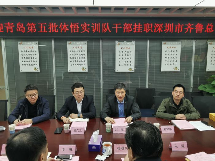 汪舵副书记介绍了王玉光部长的基本情况,以及青岛派驻深圳第五批体悟实训干部的任务,并对挂职干部提出要求,希望王玉光部长能多多参与商会的活动和工作,向深圳企业家学习,从而推动青岛干部思想观念、思维方式、行为习惯、工作方法等各个方面的深刻变革,拉近青岛与深圳间的距离。