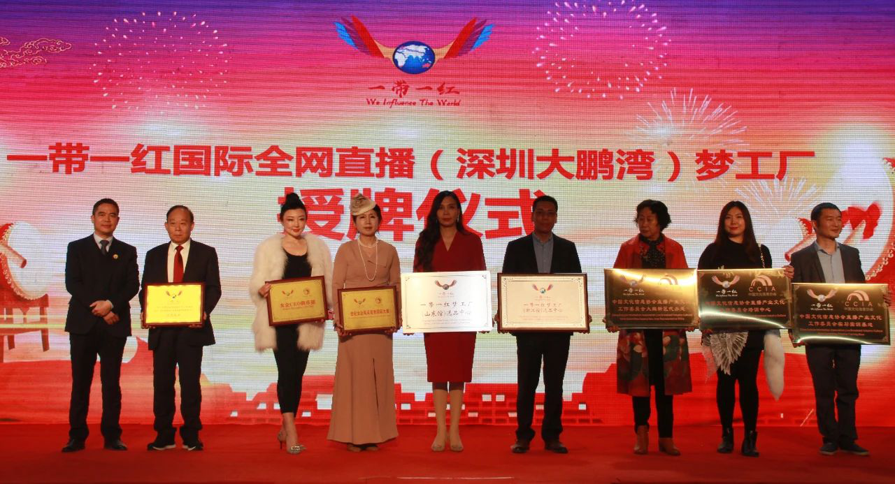 在仪式期间,还进行了授牌,一带一红梦工厂(浙江馆)选品中心、一带一红梦工厂(山东馆)选品中心、《女企CEO俱乐部》、《世纪女企风采竞秀国际大赛》、中国文化信息协会直播产业文化工作委员会大鹏新区代办处、中国文化信息协会直播产业文化工作委员会培训中心、中国文化信息协会直播产业文化工作委员会实习实训基地、一带一红梦工厂授予深圳前海丸沃医药生物科技有限公司优选企业。