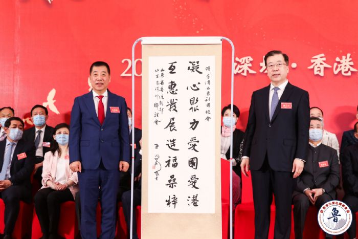 山东省委统战部部长张江汀在致辞中表示,衷心希望社团总会要更高的举起爱国主义旗帜,团结带领广大会员乡亲,坚决贯彻“一国两制”方针和基本法,积极参与香港社会的政治事务,以身作则做好中央和涉港政策宣传,旗帜鲜明与破坏祖国统一的行为作斗争,为维护香港繁荣稳定贡献更大力量;同时,他希望社团总会广泛邀请香港各阶级、各界别的代表人事到山东参访,探索建立鲁港经济、文化、社会深层次常态化交流机制,持续为山东的发展聚人气、聚人脉、聚人心。