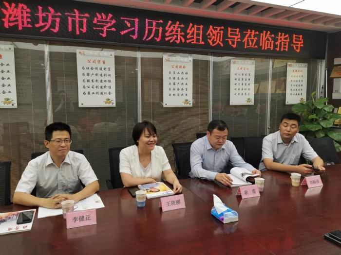 2021年5月18日,安丘市副市长、深圳对标学习历练管理组组长王晓丽、潍坊市统战事务服务中心主任耿震、潍坊市委宣传部意识形态科科长李健正、安丘市金融服务中心主任刘振强一行莅临我商会考察指导。鲁商联盟会常务副会长、广东省山东商会常务副会长、广东省异地商会联合会执行会长、广东省山东烟台商会会长孙明高,商会副会长兼供应链金融分会会长焦虹,商会理事会秘书长周爱先热情接待了王晓丽副市长一行,就深化商会与潍坊市合作,以及青州市政府办公室三级主任科员韩文杰同志在商会的学习历练情况进行了交流。