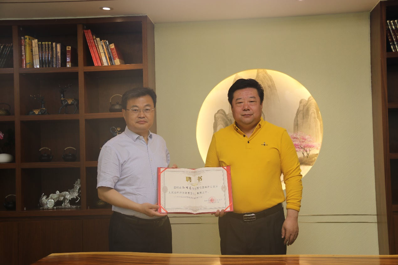 滨州市沾化区委副书记、区长刘长海为孙明高会长颁发聘书