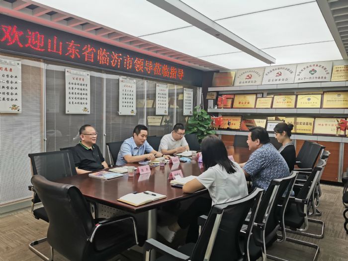2021年8月17日,山东省临沂市人民政府副秘书长杜以方带队来我商会考察指导,临沂市驻粤流动党员党委书记、市政府驻广东联络处主任张肖,临沂市政府驻广东联络处科员弭孟朝陪同。鲁商联盟会常务副会长、广东省山东商会常务副会长兼深圳会长、广东省异地商会联合会执行会长、深圳市齐鲁文化研究会会长孙明高,商会副会长、临沂市河东区委组织部部务会成员、党员教育中心主任姜保保,商会理事会秘书长周爱先热情接待了杜以方副秘书长一行,并展开座谈交流。