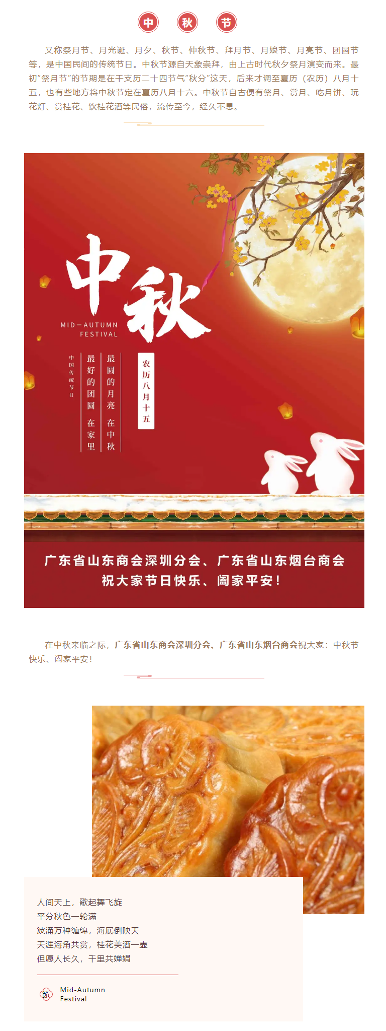 节日祝福 | 广东省山东商会深圳分会、广东省山东烟台商会祝大家中秋节快乐、阖家平安!