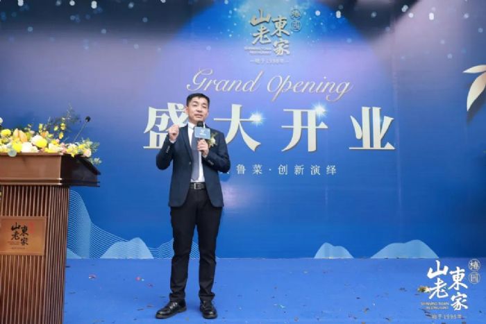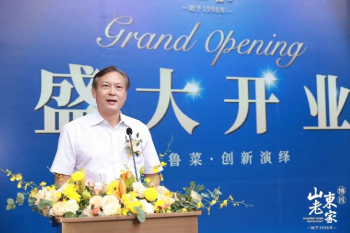 接着,江南会长讲话,他首先代表广东省山东商会对山东老家珠海椿园店开业表示热烈的祝贺,并对尹江波董事长、赵永菁执行董事及全体员工表示亲切的问候。他说,23年来山东老家从孔孟之乡来到羊城,一路走到深圳、中山、东莞、肇庆等,及全国多个城市,发展至今已拥有30多家分店,现在又在珠海这座美丽的海滨城市,也是内地唯一与香港、澳门同时陆路相连的城市开设了珠海椿园分店,这是首家轻奢鲁菜商务旗舰店。山东老家不断蝶变升级,服务越来越周到,服务水准也越来越高,让鲁菜文化融入一座又一座城市,让越来越多人也爱上鲁菜,爱上山东老家。山东老家隶属食尚国味集团,集团旗下还有:喜窝、食尚国味、粥百味、名门华宴、齐鲁王府、东上海鲜等多个着名餐饮品牌。从经营餐饮食尚国味集团,到收购135年来从未离开广州老西关的百年老字号陶陶居,打造全国性的驰名品牌食品餐饮企业,实现老字号新启航,大大提升了食尚国味集团在餐饮界的地位和名气,这足以见得尹江波董事长和赵勇菁执行董事的实力和魅力。食尚国味集团作为广东省山东商会常务副会长单位,不仅对商会大小活动积极给予支持,而且对广东经济的发展做出了巨大的贡献,给山东人争了光!特别是在今年全国面临的突如奇来的新冠疫情过后,食尚国味集团积极响应党中央和省委、省政府复工复产号召,在饮食界,率先按照复工复产的条件要求进行了开业复工,得到了广州市政府和社会各界的肯定和好评。我相信,山东老家在尹江波董事长及赵永菁执行董事的带领下,一定成为老百姓心中的厨房,成为餐饮界的楷模。希望我们在座的各位嘉宾,特别是在珠海、澳门的山东籍领导和老乡,要多支持、多捧场,常回家看看,品品家乡菜,喝点家乡酒,共叙家乡情。