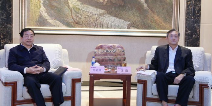 山东省委常委、济南市委书记孙立成(左)、广东省山东商会会长江南(右)