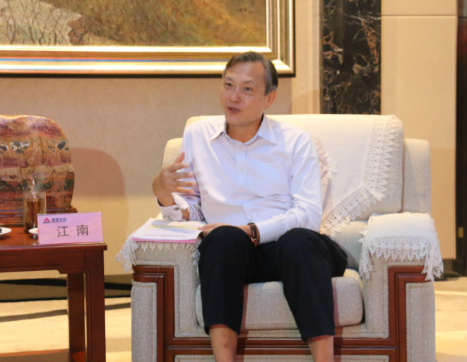 会上,江南会长首先请孙书记一行以观看广东省山东商会介绍片的形式,将广东省山东商会的建设情况向孙书记作了全面汇报。随后,江南会长讲到,孙书记根据山东省委常委的分工,继忠林书记之后代表省委、省政府挂钩联系我们商会。书记的到来,我们期盼已久!孙书记上任后,对济南的发展建设作出新的重要布署——“凝心聚力开拓进取,只争朝夕拼搏实干,奋力谱写加快建设新时代现代化强省会新篇章”。近两年,济南市发展势头迅猛,2020年GDP过万亿,在“2021年中国百强城市排行榜”中,综合分值列全国第15位,连续两年列全省第1位,这充分体现了孙书记雷厉风行的务实作风,让我们深感敬佩、深受鼓舞!江南会长提到,济南是一座综合竞争力强、辐射带动力强、区域代表性强、人民幸福感强、社会治理能力强的城市。我作为济南人,时刻关心济南的发展;作为商人,在商言商,这几年,济南的营商环境和企业发展环境越来越好。济南市委、市政府十分关心和重视在外鲁商企业的发展,倾听在外鲁商心声,使我清晰感受到山东营商环境的不断优化,让我们民营企业家有机会在这片热土上充分发挥自己的功能和力量。江南会长表示,我们商会将以孙书记这次视察、通报济南良好发展机遇为契机,尽快组织会员企业和知名企业赴济南进行实地考察,争取有多个优质项目落地济南,助力家乡经济建设,继续以实际行动感恩和回报山东省委、省政府,济南市委、市政府领导对广东省山东商会的支持和厚爱,为鲁粤两地社会经济发展积极贡献力量。