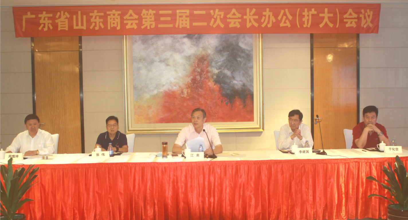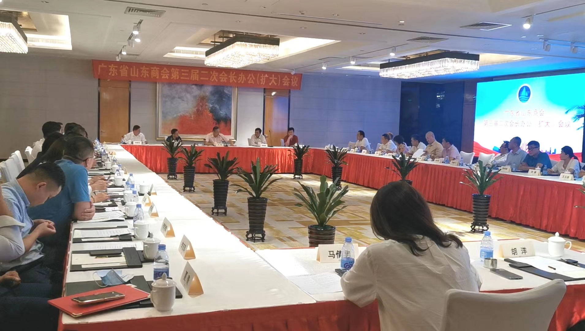 广东省山东商会第三届二次会长办公(扩大)会议于2022年6月26日在广州圣丰索菲特大酒店圆满召开。广东省山东商会会长江南,监事长李建国,秘书长周慎坤,常务副会长:张伟、王庆安、仇成林、尤培波、于化空、张明勇、刘勇宏、徐秀华、刘长勇、陈丽光、杨民军、孔祥勇、王翔宇、孙世新,副会长:肖思辉、王军船、梁衍强、李相鲁、于振清、郭守坤、庄文华、孙俊杰、孙宏哲、郭兆礼、赵金刚、李鹏飞、于澜海、戚子轩、王玉强、宿明新、刘 娜、秦 亮、孙福山、李东坤、侯勇,理事:施治生、王丽、范祁睿、郭冲,李紫晔、李学璋、李东润,监事:尹兆杰,技术专家委员会副主任袁清珂,副秘书长:夏青、杨洪双、刘娜,秘书处党支部副书记马倩男、胡洋,共计60余人参加了此次会议。其余常务副会长、副会长、理事因事请假,未参加此次会议。会议由广东省山东商会周慎坤秘书长主持。